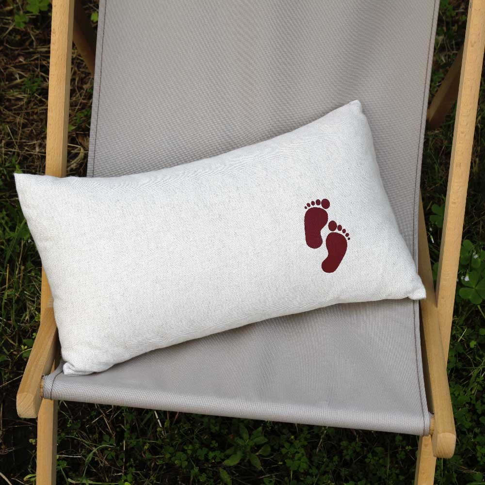 Référence : 30x50 tissu écru petits pieds bordeaux