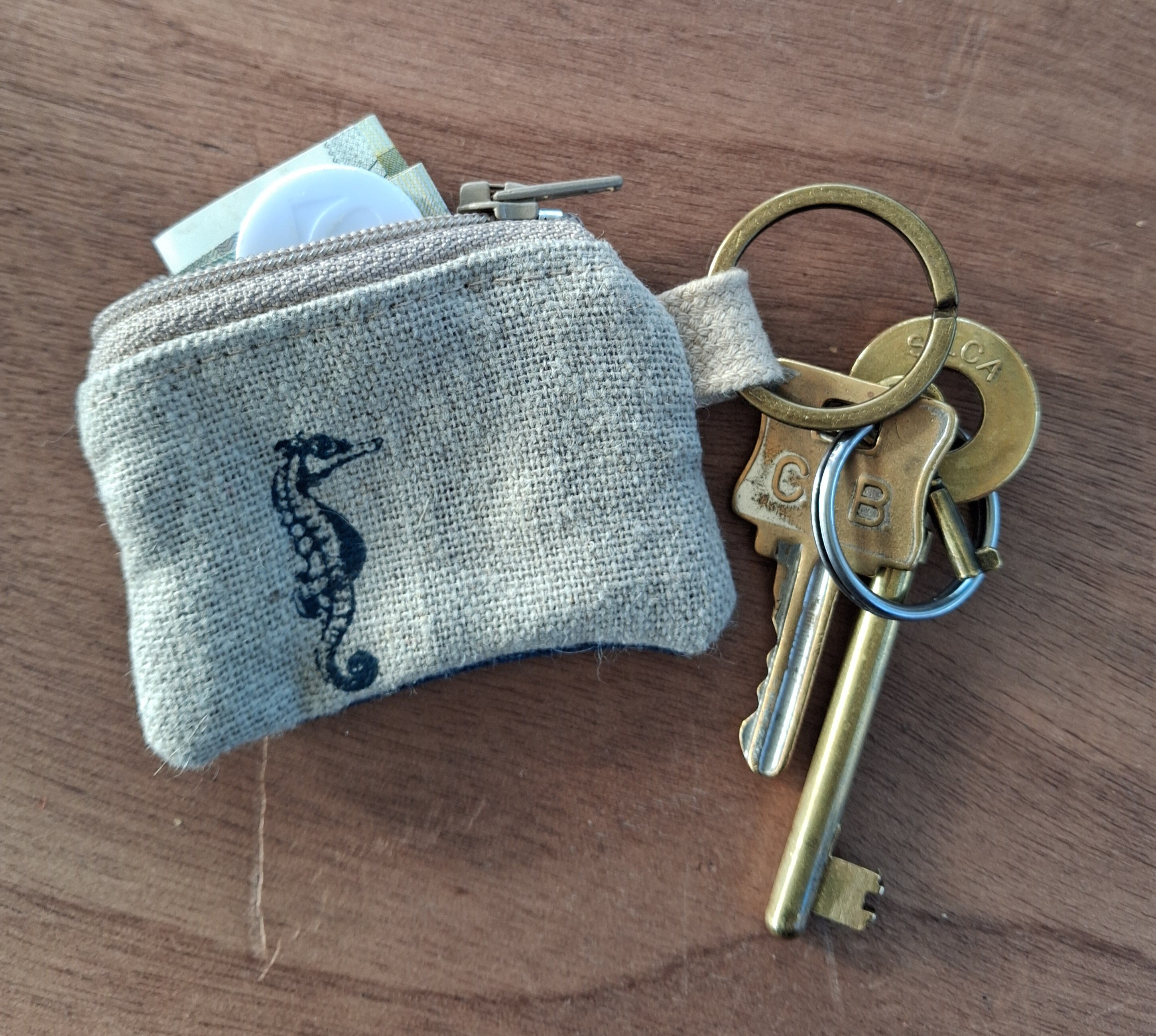 Référence : porte clé mini porte-monnaies beige hippocampe bleu