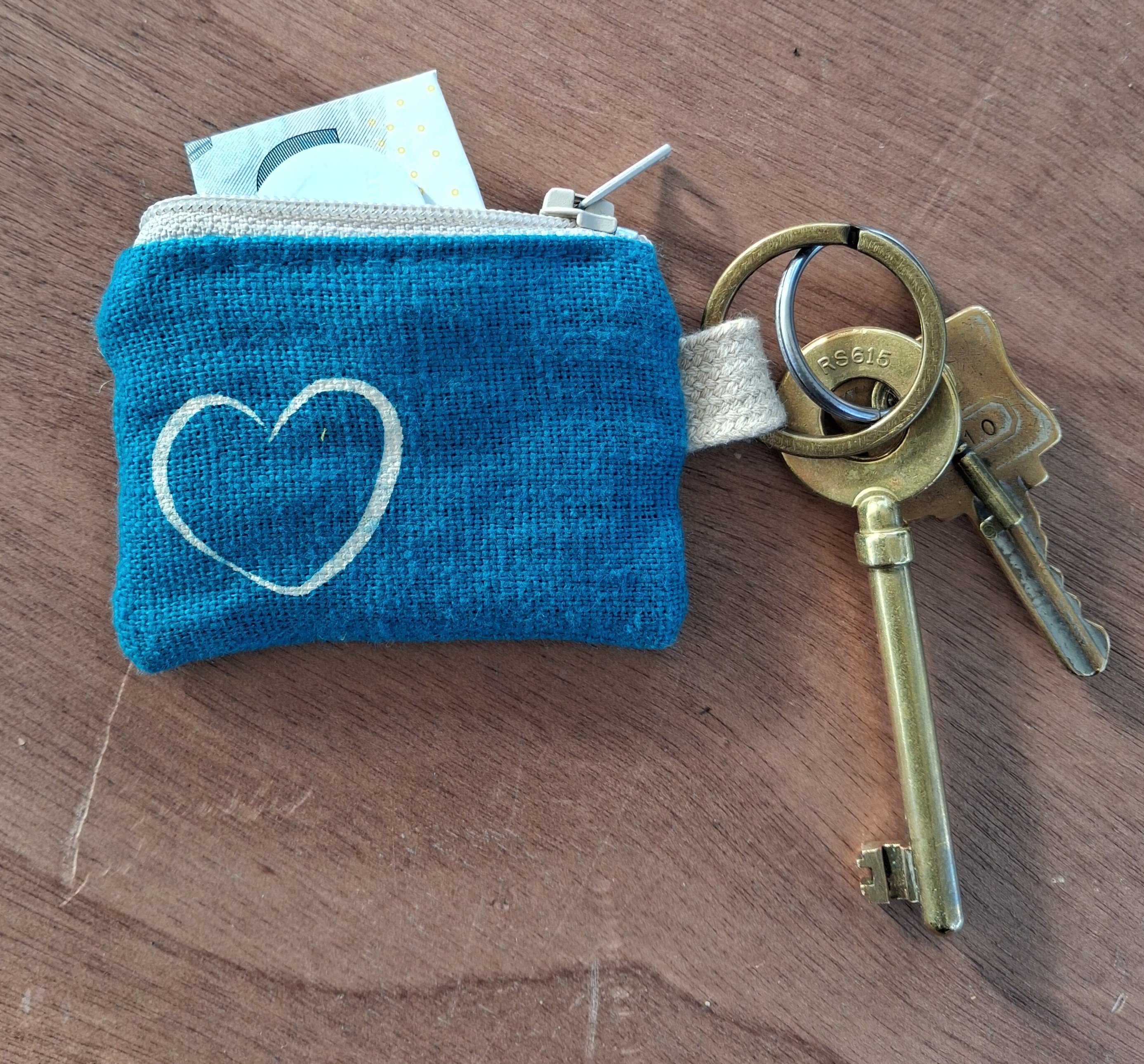 Référence : porte clé mini porte-monnaies bleu cœur beige