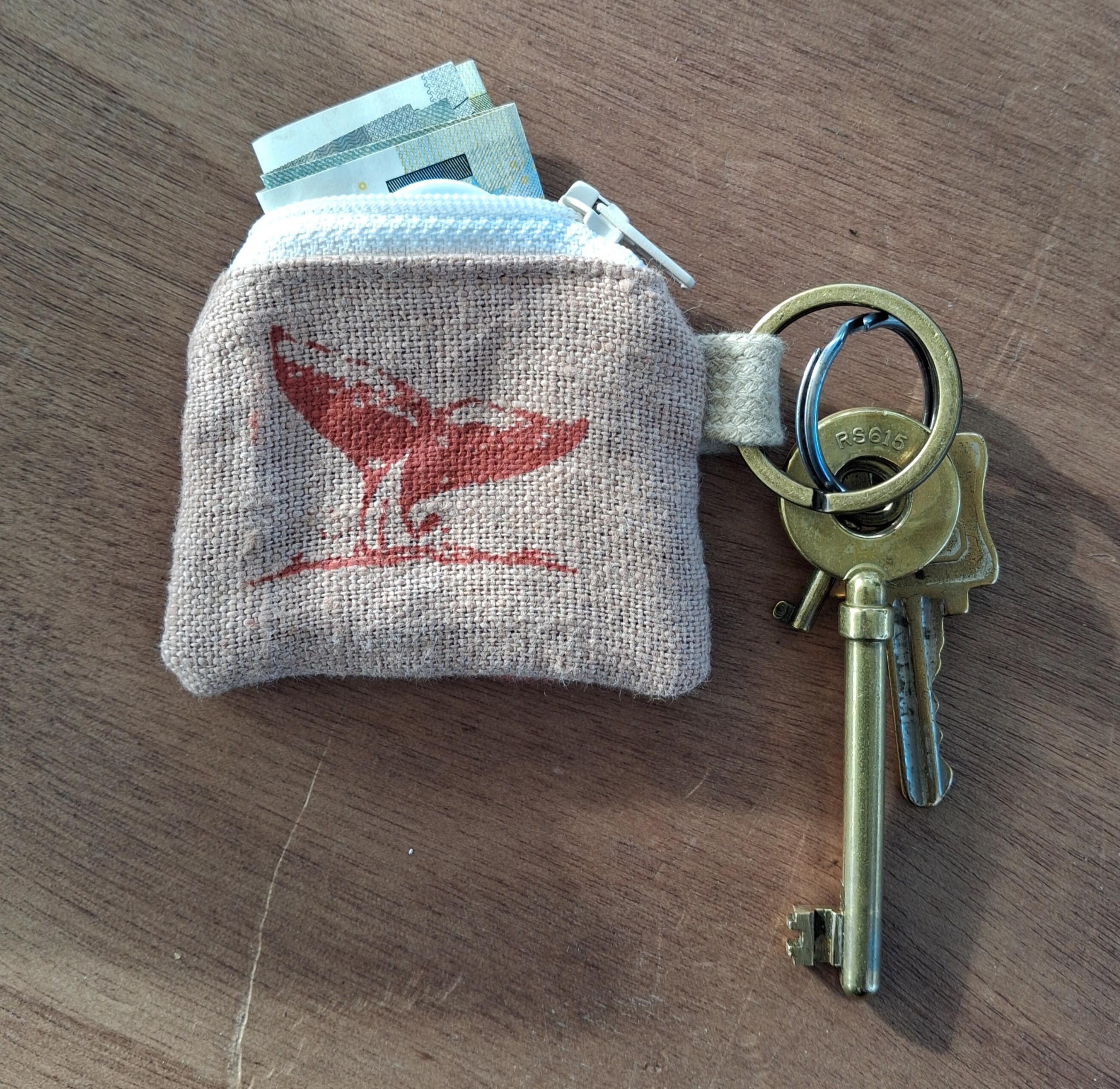 porte clé mini porte-monnaies rose queue de baleine terracota