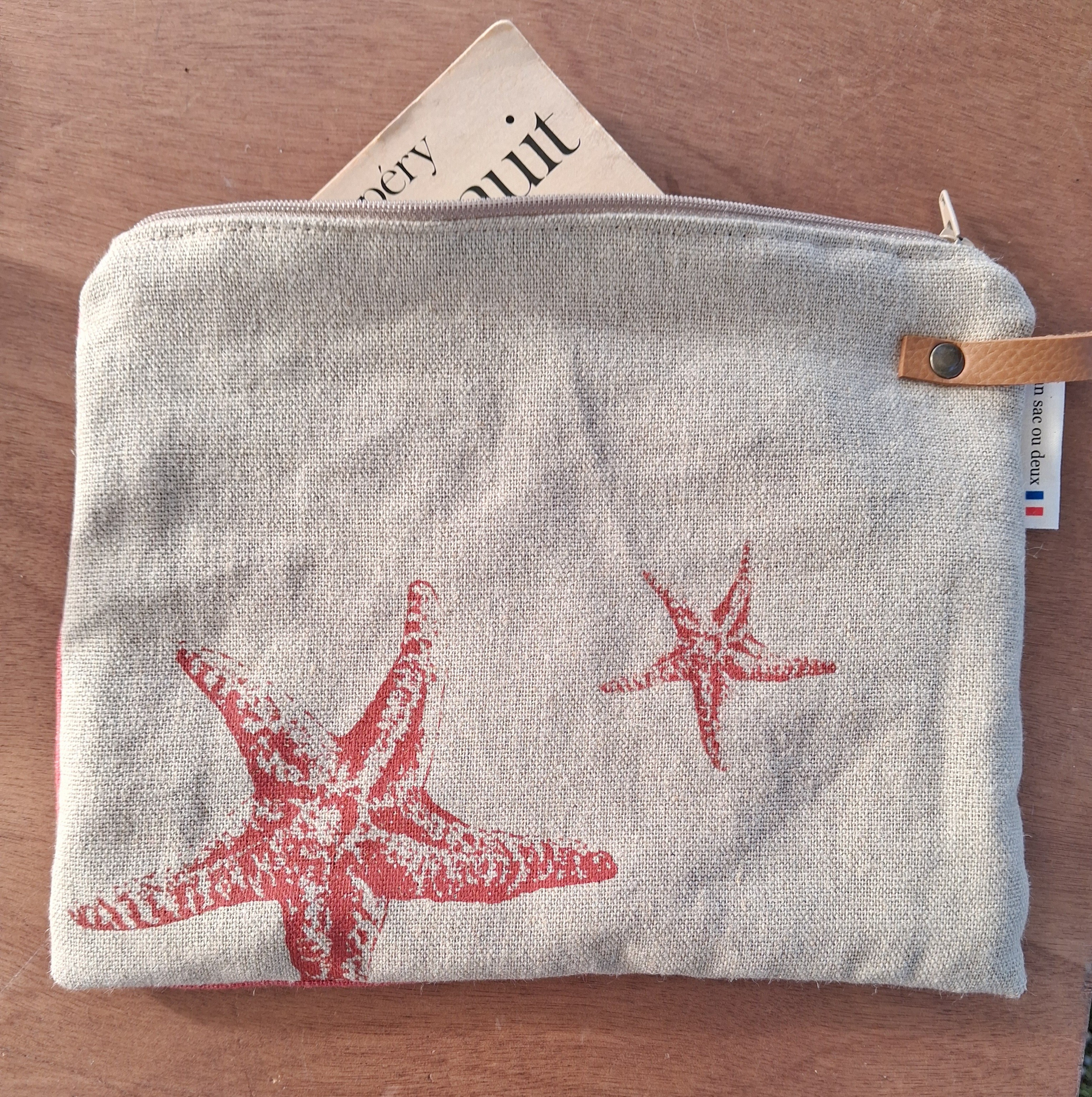 pochette grand format beige Etoile de mer teracota