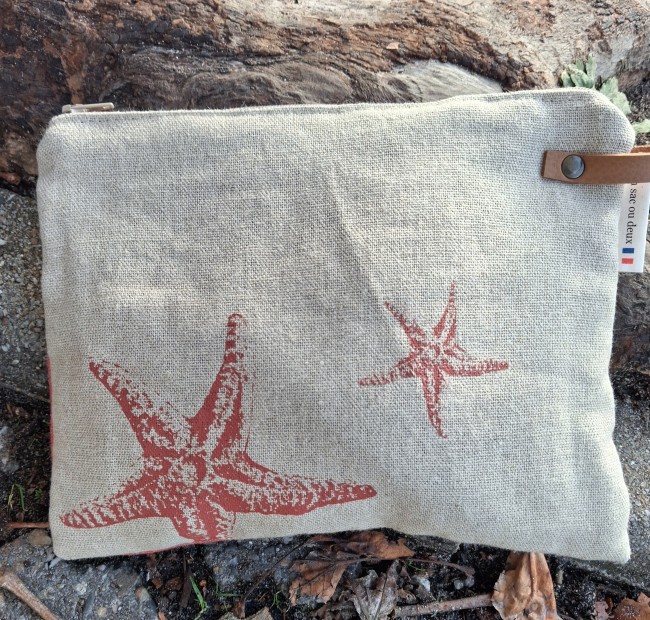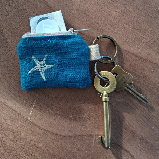 porte clé mini porte-monnaies bleu Etoile de mer beige
